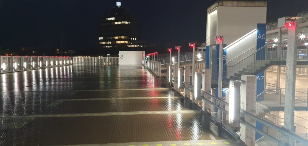 The car park comprises nine levels. The dynamic displays from MSR-Traffic visualise at the entrance how many parking spaces are still available on each level.